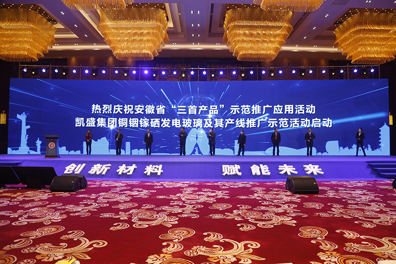 “三首產(chǎn)品”示范推廣應(yīng)用活動是本屆論壇的重要環(huán)節(jié)之一,聚焦凱盛集團銅銦鎵硒發(fā)電玻璃及其產(chǎn)線的全面推廣。啟動儀式中,何樹山、干勇、彭壽、汪瑩純、汪春明、牛弩韜、羅平共同點亮活動啟動大屏。