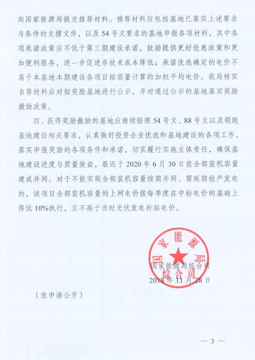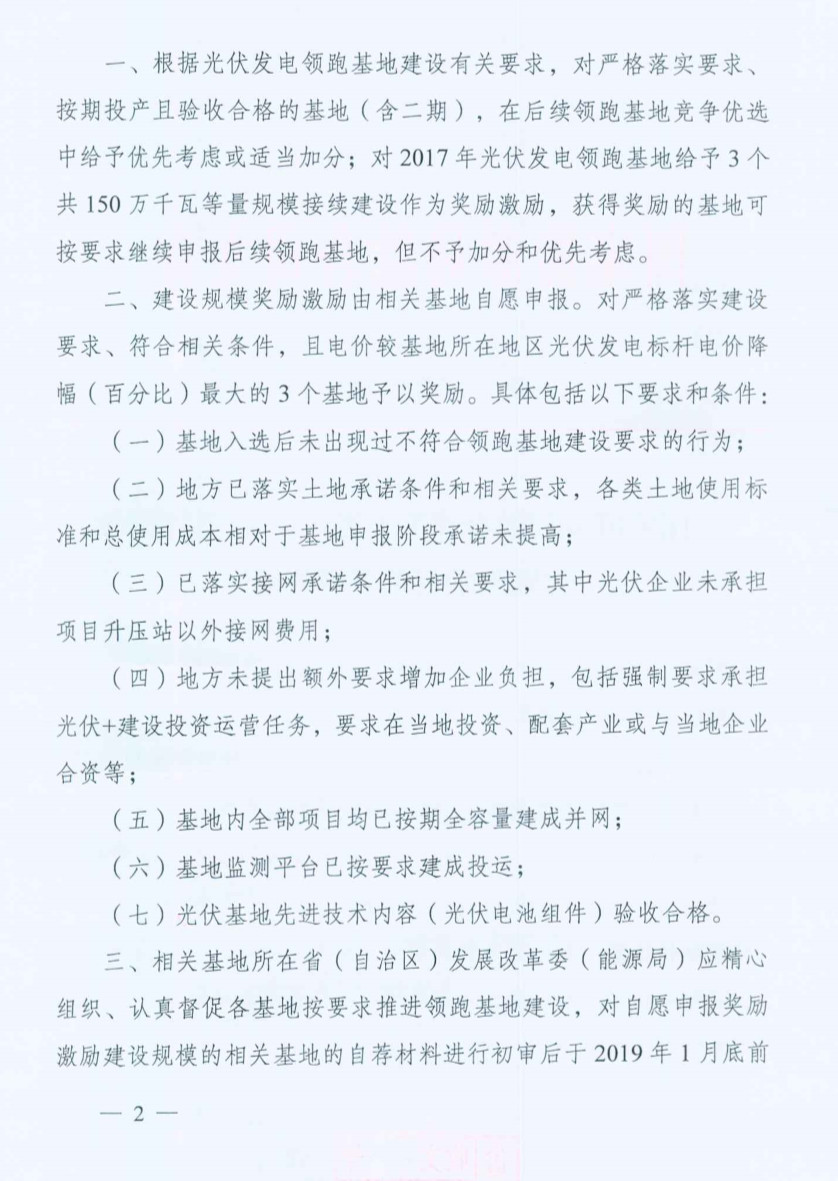 近日,國家能源局綜合司發(fā)布《關(guān)于光伏發(fā)電領(lǐng)跑基地獎勵激勵有關(guān)事項(xiàng)的通知》,對于嚴(yán)格落實(shí)要求、按期投產(chǎn)且驗(yàn)收合格的基地(含二期)在后續(xù)領(lǐng)跑基地競爭優(yōu)選中給予優(yōu)先考慮或適當(dāng)加分;對2017年光伏發(fā)電基地給予3個共150萬千瓦等量規(guī)模連續(xù)建設(shè)作為獎勵激勵。
