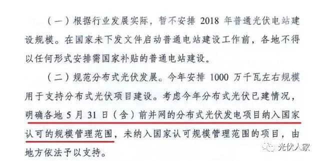 因為按照“531”的823號文件明確:各地5月31日(含)前并網(wǎng)的分布式光伏發(fā)電項目納入國家認(rèn)可的規(guī)模管理范圍。這就與備案沒有關(guān)系,只要在5月31日前并網(wǎng)投運(yùn)就可以納入補(bǔ)貼范圍。地方或電網(wǎng)如果將5月31日前并網(wǎng)投運(yùn)項目列為補(bǔ)貼范圍外屬于不合理做法。截至目前為止不管是823號文件還是10月9日1459號文件都有效。所以電網(wǎng)及地方不應(yīng)把5月31日前以并網(wǎng)投運(yùn)分布式電站列為補(bǔ)貼范圍外。