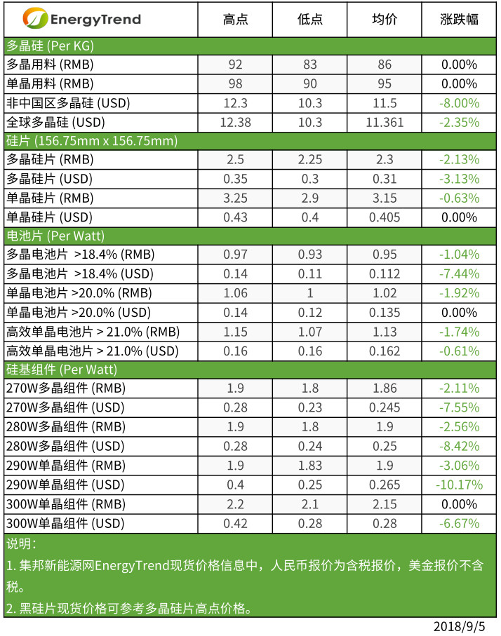 光伏產(chǎn)業(yè)供應(yīng)鏈價格報告(9月10日)