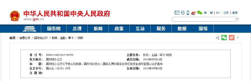 涉及光伏扶貧 國務(wù)院辦公廳發(fā)布扶貧項目資金績效管理辦法