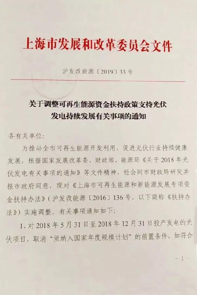 上海市:531后投產(chǎn)光伏補貼取消“須納入國家年度規(guī)模計劃”限制