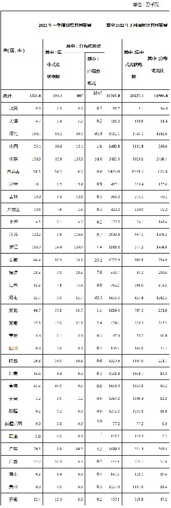 國家能源局:2022年一季度光伏發(fā)電建設運行情況